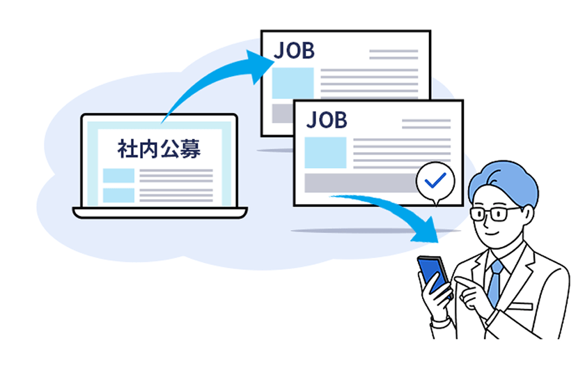 社内限定での求人公開と応募受付が可能な社内ジョブボードでキャリア機会を広げることで、社員の挑戦を促進。内部人材の活用を最大化し、人材流出リスクを低減しながら、組織の持続的成長を支えます。